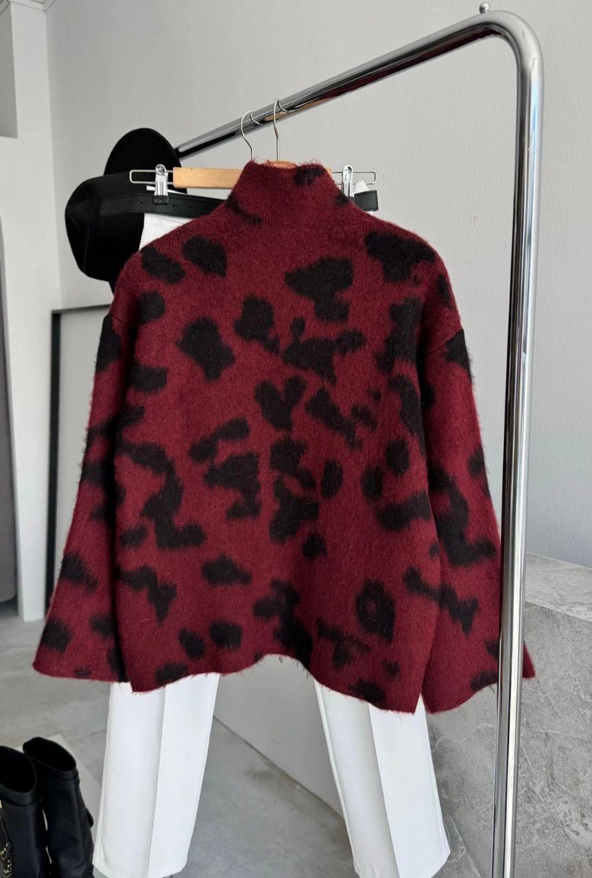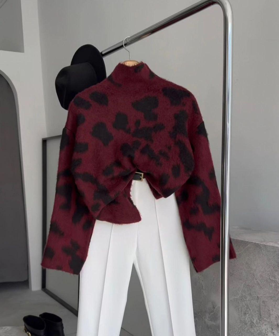bordo leopar kaşmir kazak