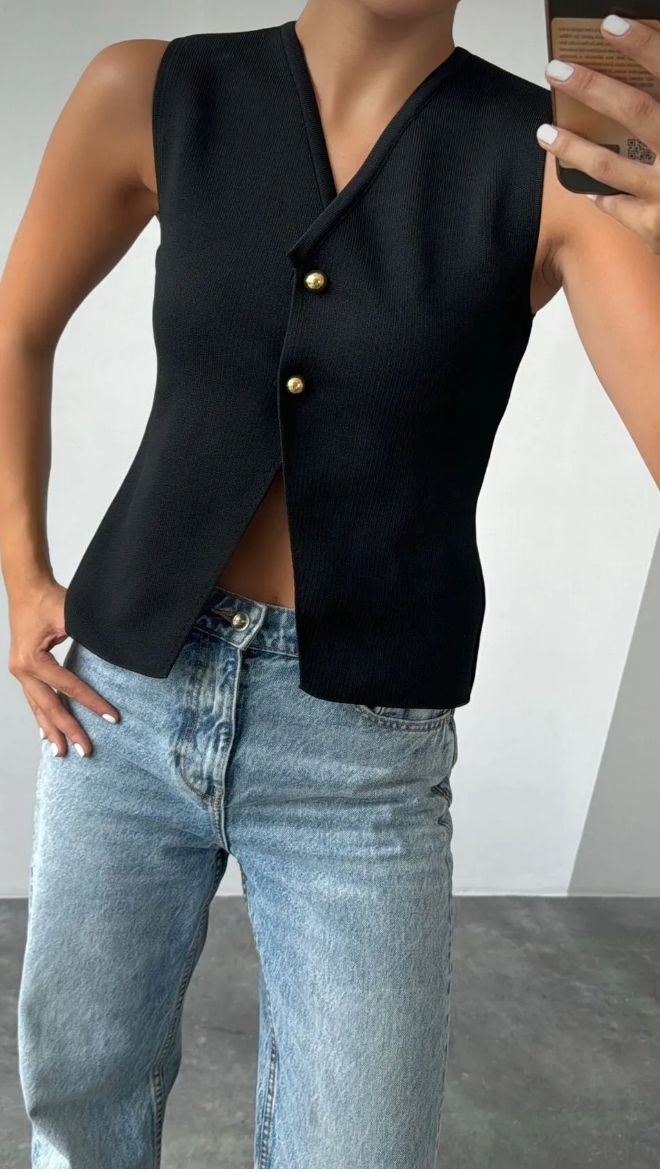 Çelik triko örme yelek siyah
