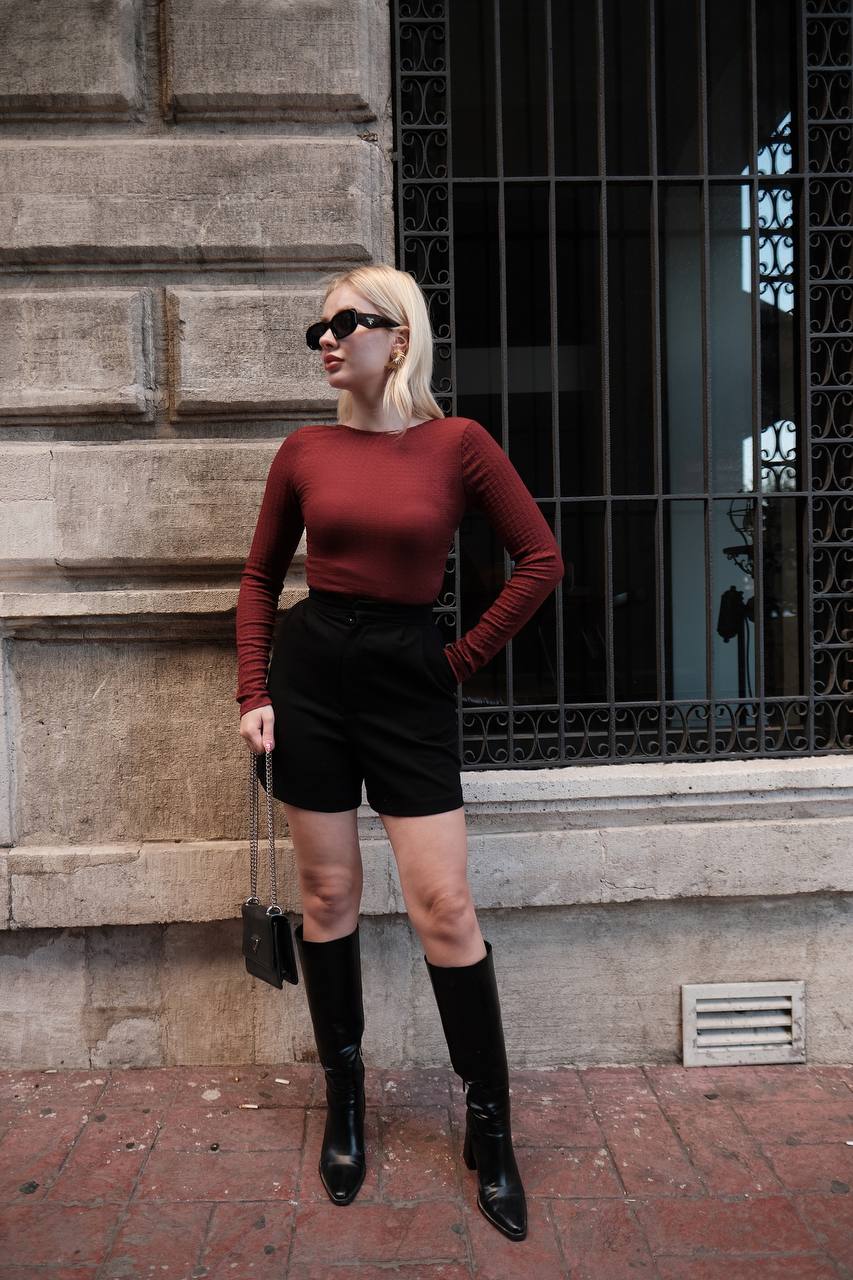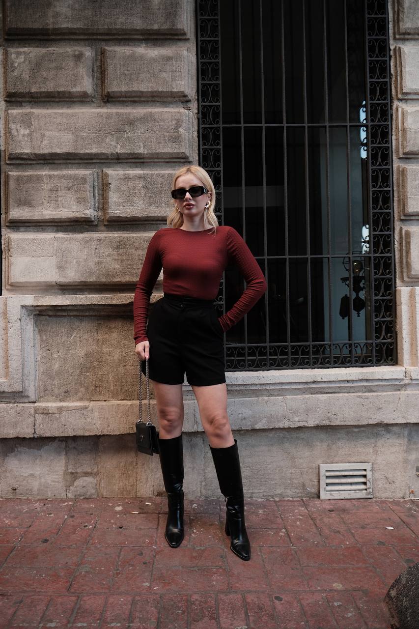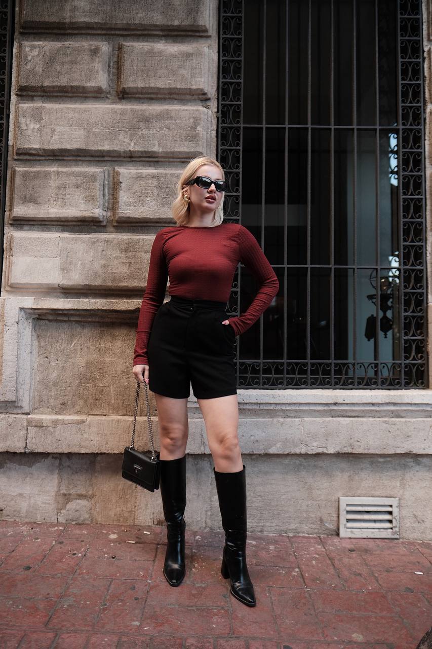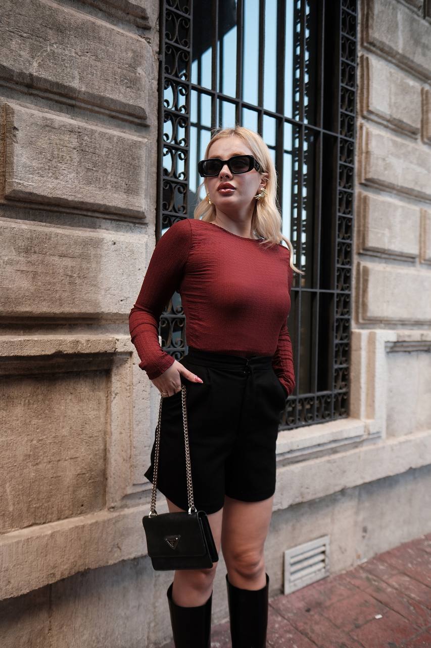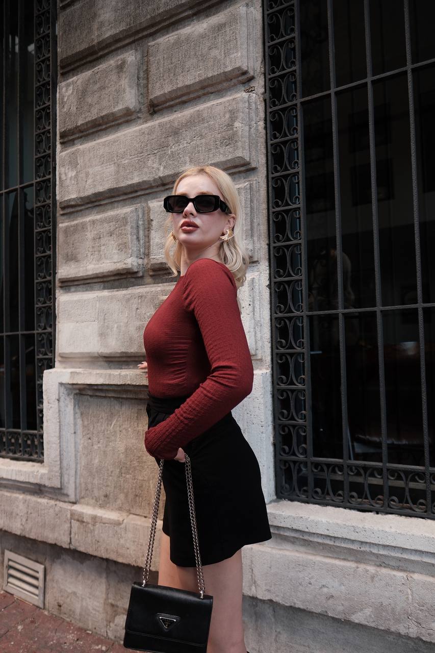 ZARA SIRT DEKOLTELİ BLUZ BORDO