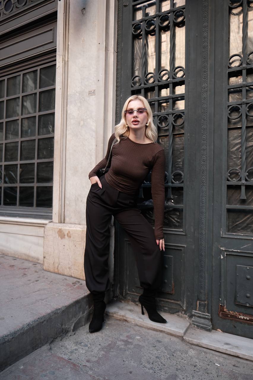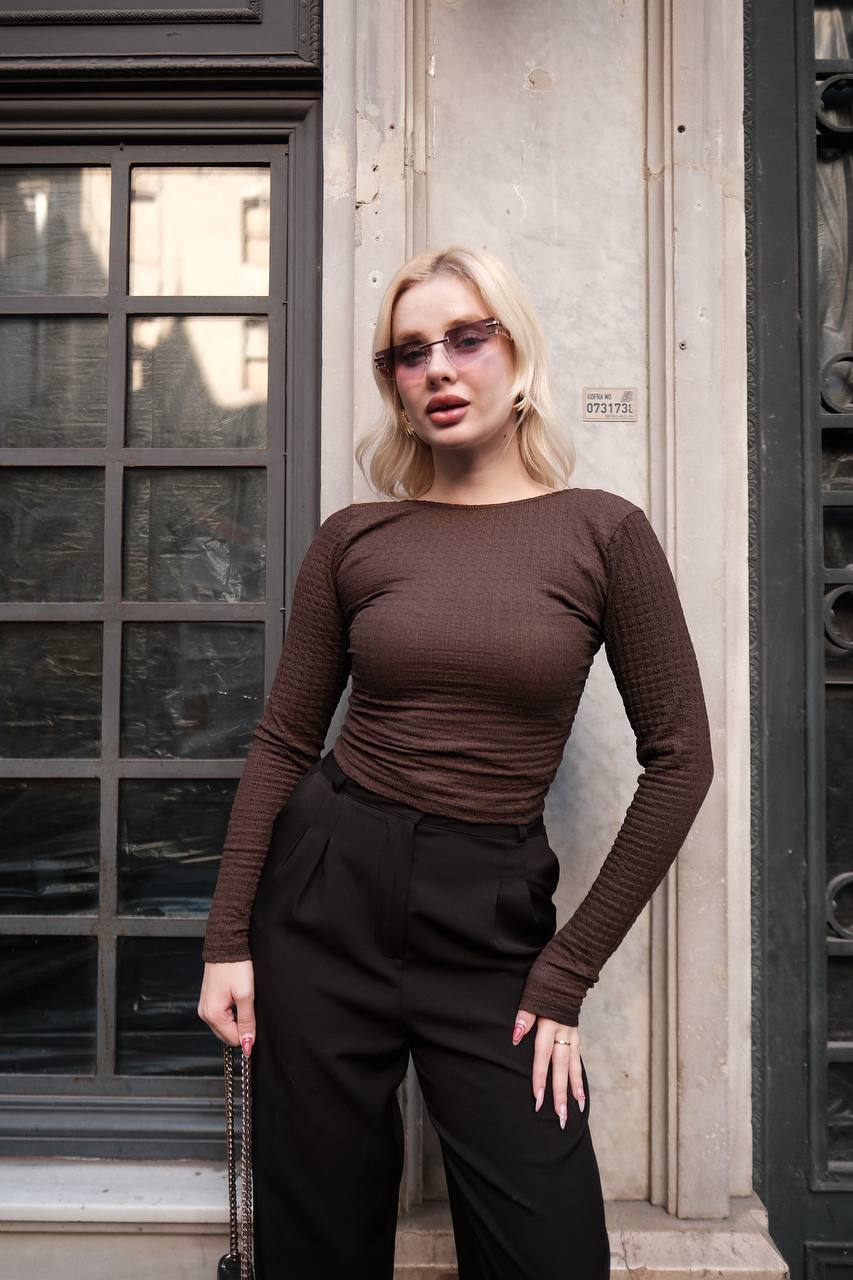 ZARA SIRT DEKOLTELİ BLUZ KAHVE